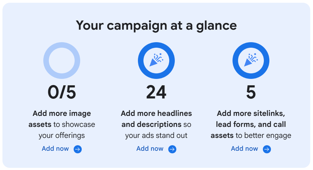 Advertisers who improve Ad Strength for their Search ads from “Poor” to “Excellent” see 12% more conversions on average. Increase yours by adding assets, like images, to prominently show ads in search results – at no cost to you.