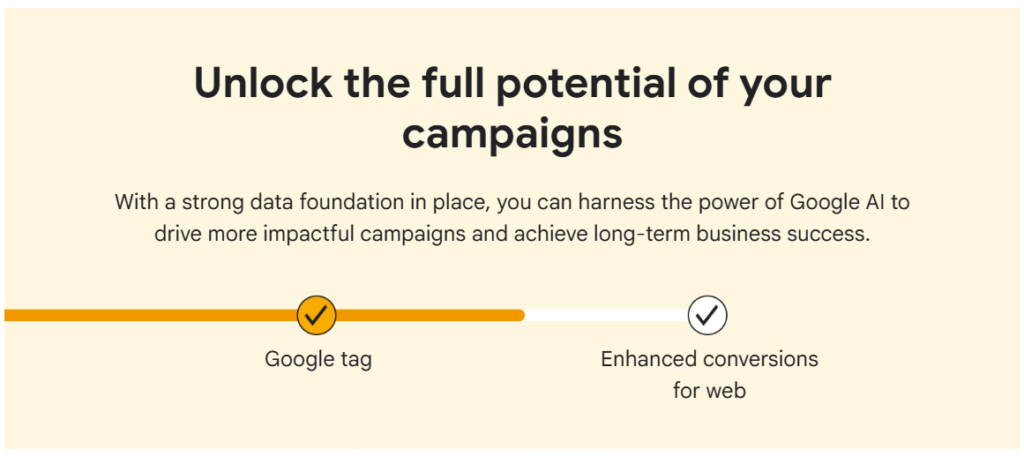 Enhanced conversions helps the Google tag capture more conversion data while maintaining user privacy. This allows Google’s automated bidding strategies to better optimize your campaigns.